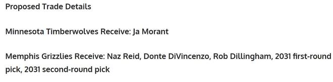 这样的支招并非空穴来风,此前记者Rob Murrows就曾曝出森林狼与灰熊围绕莫兰特进行了一次认真的谈判,只是灰熊还没有下定决心交易莫兰特。