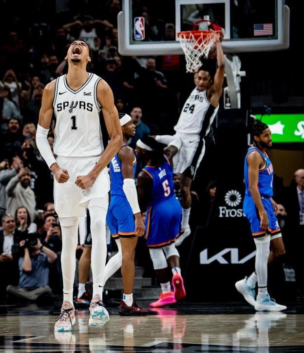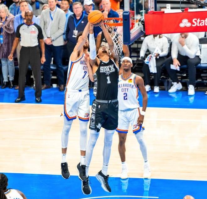文班替补复出5+5,SGA12+2+1!马刺半场46-49雷霆!