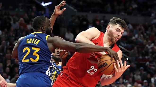 库里在比赛还剩下2分30秒时命中三分球,然后上篮得分,让勇士队取得了5分的领先优势,但勇士队此后却遭遇了溃败,延续了他们本赛季在关键时刻的拉胯表现。开拓者队这边凭借格兰特的一记三分球拉开了他们反击的序幕,这一切源于阿夫迪亚和克林根进行了一次挡拆配合,而格林因为担心顺下的克林根在篮下得到轻松得分的机会而退得太靠后,结果让格兰特得到了出手空间。