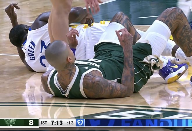 勇士本场更早进入状态,雄鹿一上来进攻受阻,8-13落后,其中罗林斯一人得7分。在连续造犯规上罚球线后,雄鹿逐渐扭转比赛形势,罗林斯突破后分球给底角的特纳,后者三分出手命中,雄鹿17-13领先,勇士喊暂停了。暂停回来勇士的防守更加专注,库明加反手上篮打成,雄鹿的特伦特也进,格林造成特纳犯规,希尔德抢断,巴特勒上篮强吃得分,勇士21-22,波杰机敏抢断上篮后勇士反超。
