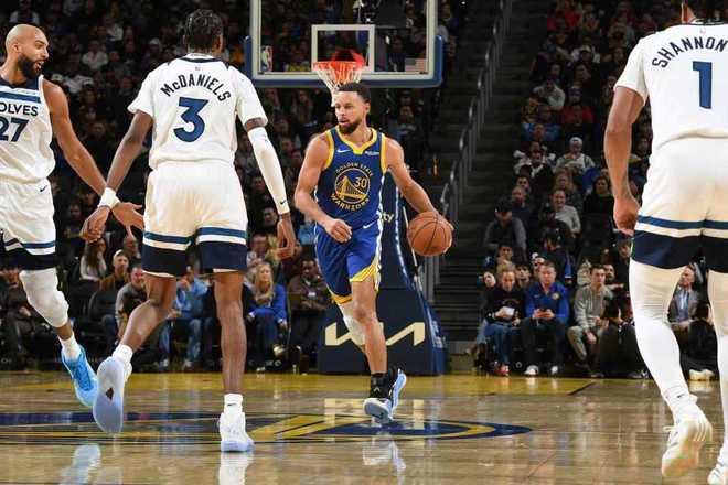 库里再中三分,穆迪上篮反超3分,迪文琴佐三分追到117-117。库里两罚一中,戈贝尔隔扣波斯特,波斯特三分不中,里德两罚一中,库里三分不中,迪文琴佐三分扩大5分优势。梅尔顿上篮不中,迪文琴佐继续被犯规两罚全中扩大优势,库里上篮命中,森林狼继续罚球得分,勇士无力回天,最终勇士惜败森林狼。